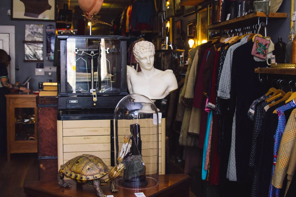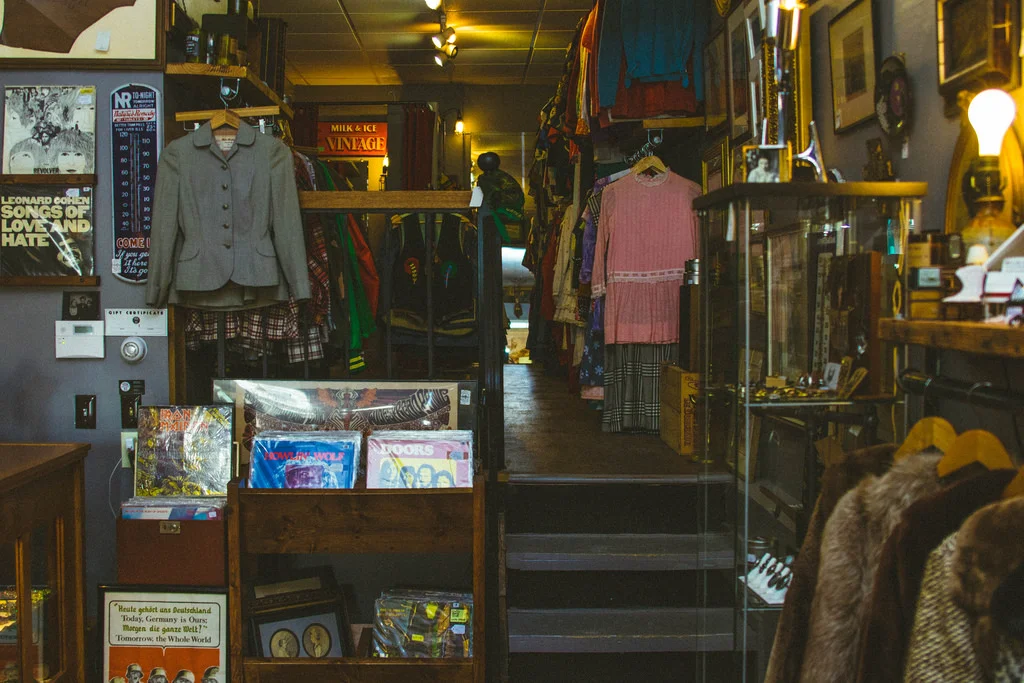 The best vintage shops we've been in are warm and owned by people who are genuinely stoked to help you out, so a useful tip is never hesitate to ask for assistance! We've found that a lot of people who say they're bad at shopping for vintage just over-complicate it for themselves. Try to shop the same way you would in any clothing store and expect quality to be the same, if not better. Chances are if we were to dig through your modern wardrobe, we cold match each piece with a trend that debuted previously throughout history. If you're overwhelmed by vintage shops, narrow down what you're looking for by coming up with intentions of what you want before you go in. Doing a little style research makes it easier for you and a shop owner to focus on finding what you really want.