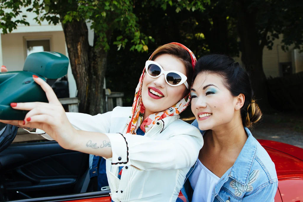 Thelma and Louise took the very first onscreen selfie but back then, it wasn't called a selfie, it was just a "hey, let's take a picture of us, nobody is here and my arm is long enough" photo.